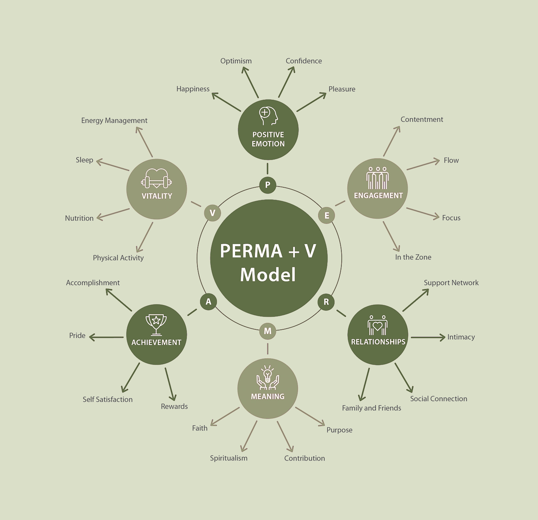 - P – Positive Emotion: Cultivating optimism, gratitude, and emotional agility